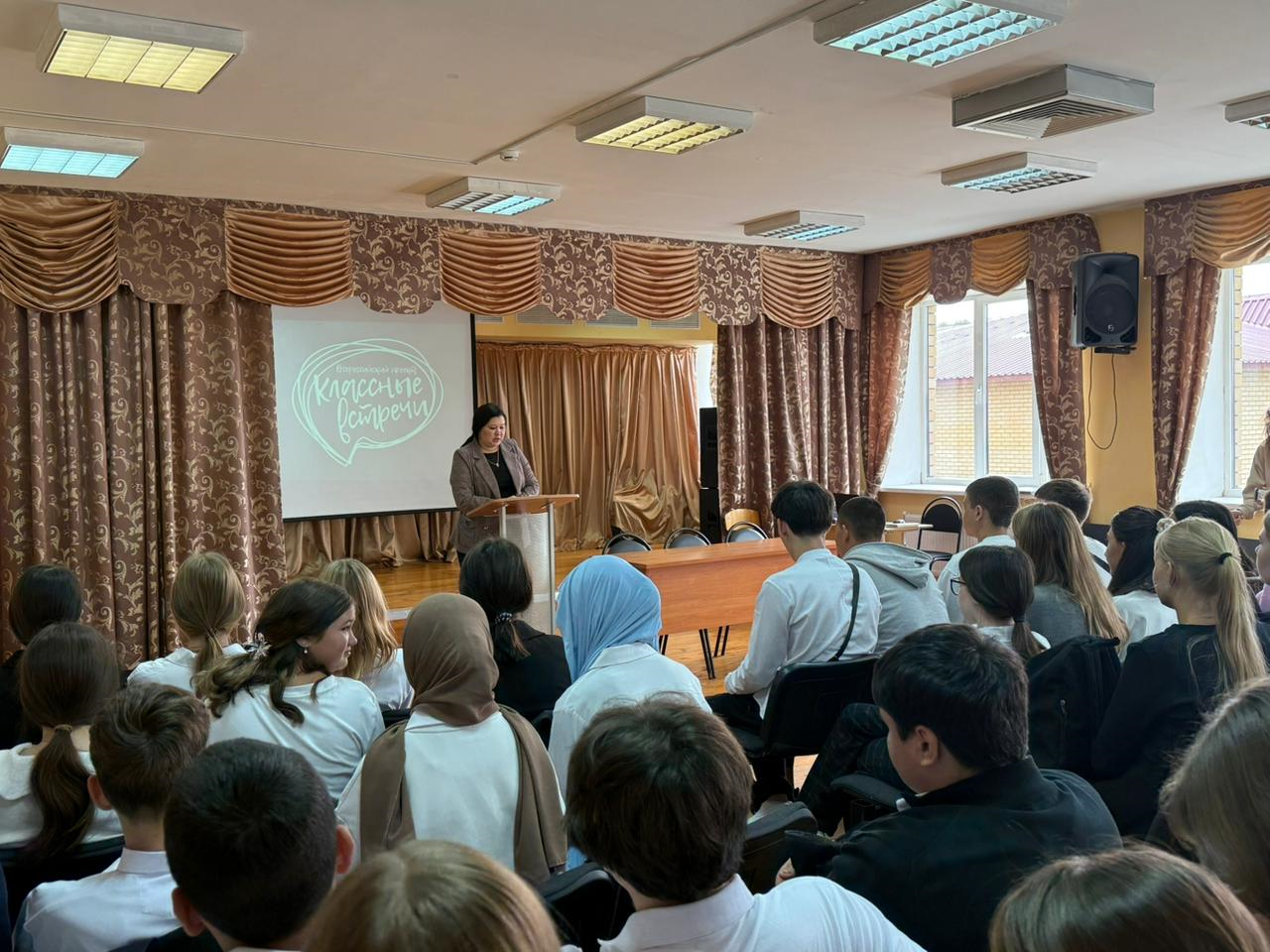 19 сентября 2025 года в целях реализации программы судей в проекте «Правосудие: от А до Я» в здании МБОУ «Высокогорская средняя общеобразовательная школа" №1 Высокогорского муниципального района Республики Татарстан состоялась встреча судьи Высокогорского районного суда Республики Татарстан Ю.В. Масловой с учащимися 9-10 классов. В ходе встречи Юлия Вячеславовна, ознакомила учеников с законодательством судебной системы РФ, со статусом судей в Российской Федерации, с информационными технологиями в судопроизводстве, уделила внимание вопросу профилактики правонарушений среди несовершеннолетних, разъяснила их права и обязанности, а также ответила на вопросы учеников. По итогам встречи ребята поблагодарили судью за интересно проведенное время!